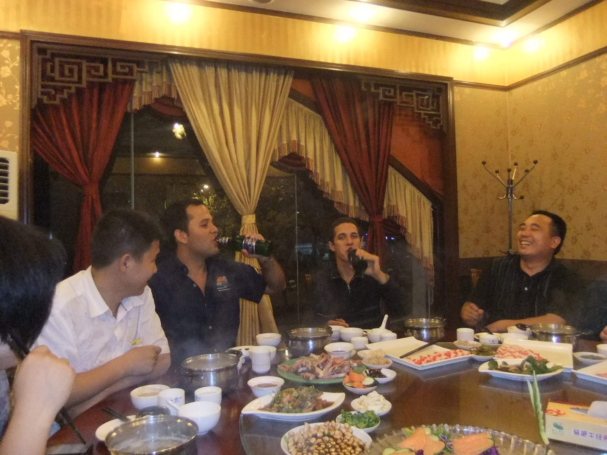 ??? 實(shí)驗(yàn)期間,物料篩分效果良好、篩分質(zhì)量穩(wěn)定,得到了來自大洋彼岸的朋友的稱贊。晚上我們公司的工作人員和委內(nèi)瑞拉的朋友暢飲狂歡,外國朋友學(xué)會了中國的“干杯”,而我們也知道了“沙路”(下圖,委內(nèi)瑞拉客戶此行我公司很滿意,迫不及待的“沙路”)
